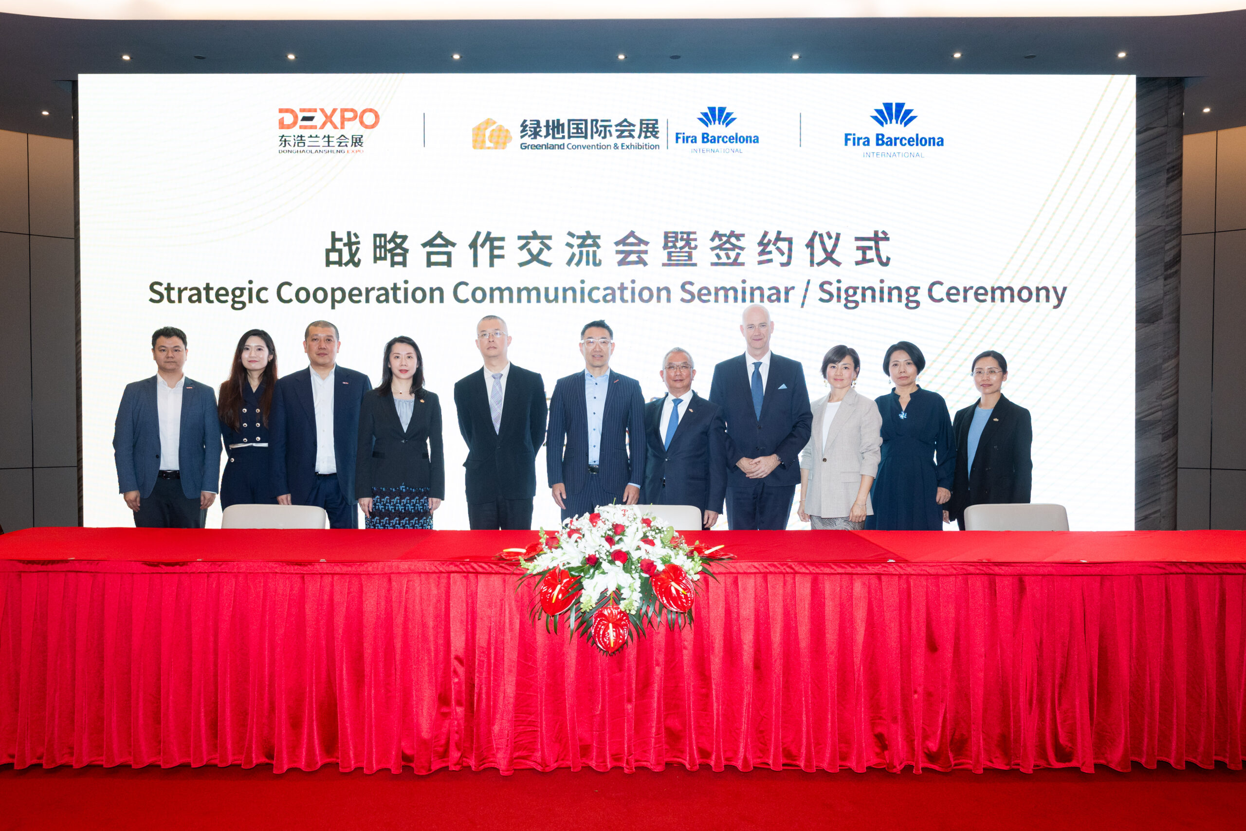 绿地酒店旅游集团总经理、上海绿地斐然展览公司董事长李瑞忠先生,上海东浩兰生会展集团董事长陈小宏先生,西班牙巴塞罗那国际展览公司CEO Ricardo Zapatero出席了签约仪式。