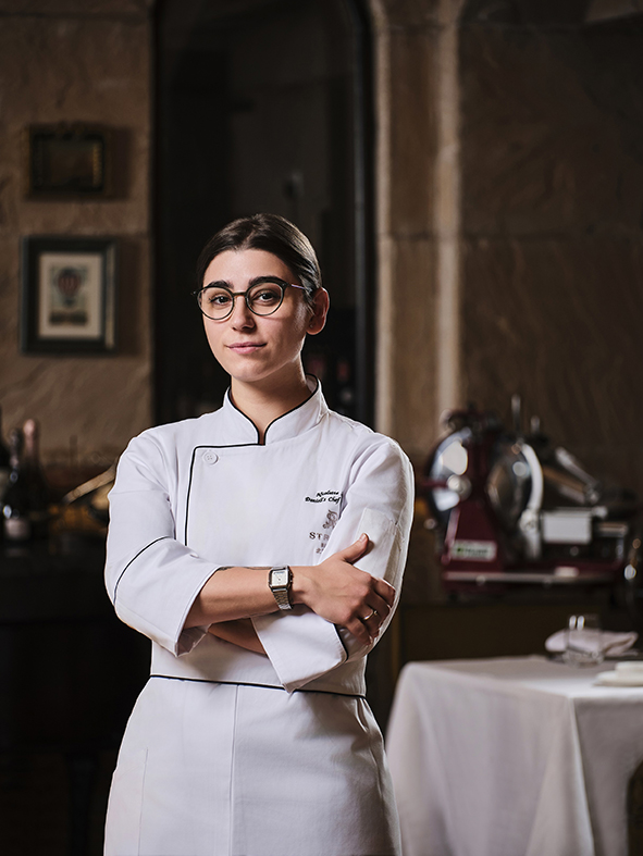 桑托罗师傅在可持续发展方面的承诺贯穿其职业生涯。她的足迹遍布意大利,从迷人的托斯卡纳风光开始,随后前往丹麦哥本哈根,深入探索可持续饮食。在知名的厨师Rene Redzepi的带领下,她在米其林三星Noma餐厅(五次荣获“全球50佳餐厅”第一名)的开创性经历,让她接触到通过发酵和野生采集进行风味探索的创新技术。此外,她在享有盛誉的米其林绿星餐厅Terra工作时,秉承了零废弃的理念;而在位于哥本哈根著名的素食餐厅Lupa的经历,也进一步提升了她在运用当季食材创造独特菜肴方面的能力。