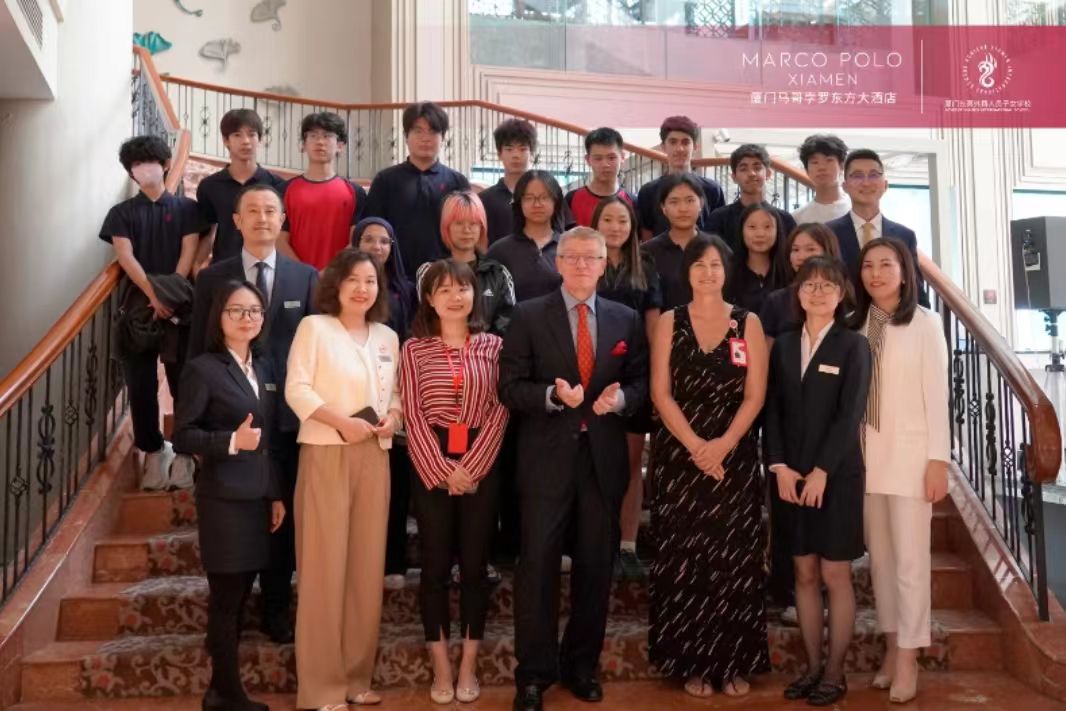近日,厦门长菁外籍人员子女学校师生一行人参观厦门马哥孛罗东方大酒店,开展职业体验活动。酒店总经理冀宏飞先生带领酒店管理层热情接待,并安排学生们参观了前厅、客房、餐饮等部门,并详细介绍了酒店运营模式与服务理念。