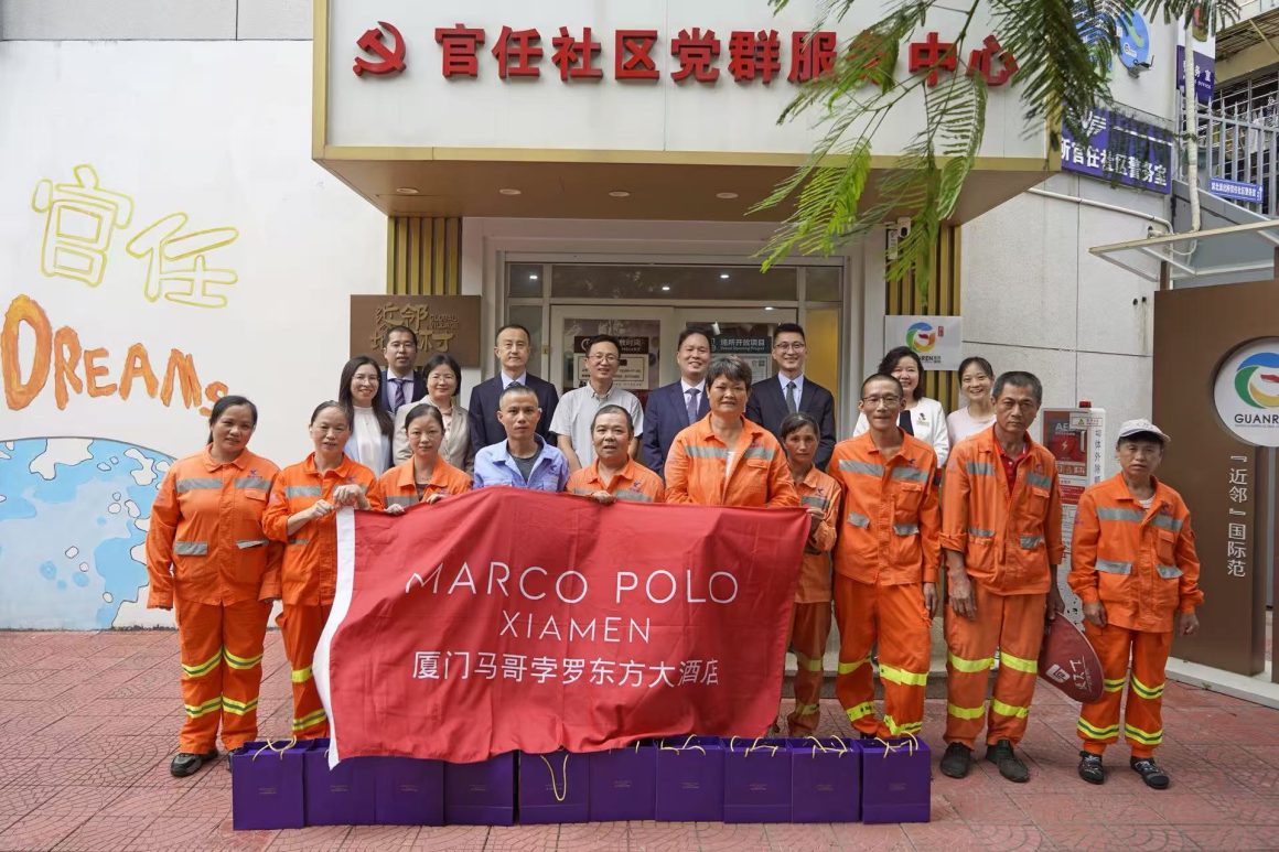 中秋佳节将至,厦门马哥孛罗东方大酒店总经理王崇明先生带领管理层团队,走访官任社区党群服务中心,慰问辛勤工作的一线环卫工人,并为他们送上中秋月饼礼盒及节日的诚挚问候与关怀。