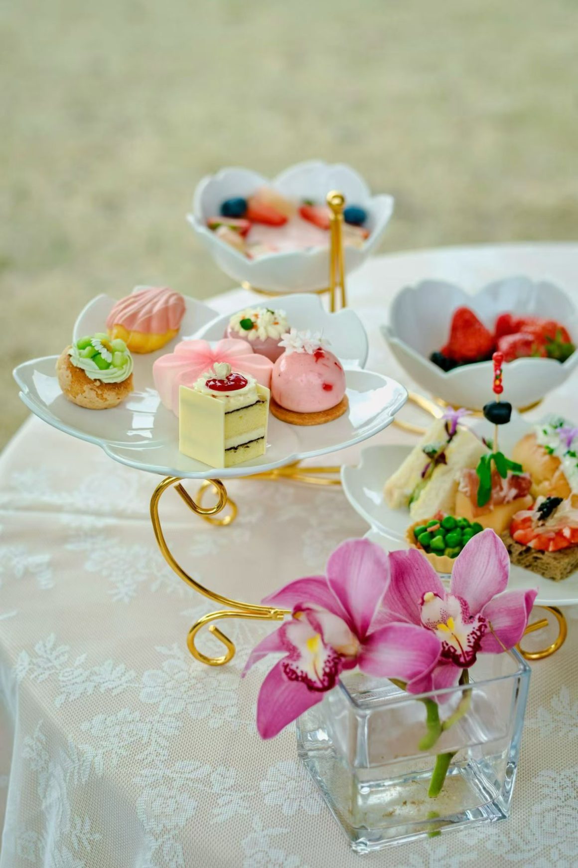采撷樱花灵感的甜品,呈现出春日惬意与美好。另有西班牙火腿蜜瓜、鸡蛋黄瓜三明治、鱼子酱甜虾三明治、蟹肉面包三明治等咸点,口感层次丰富,与您共谱春天的乐章。